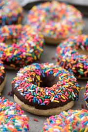 We have another recipe in store that uses fruity pebbles, but I promise you won’t have to sort them by color like these rainbow donuts :)